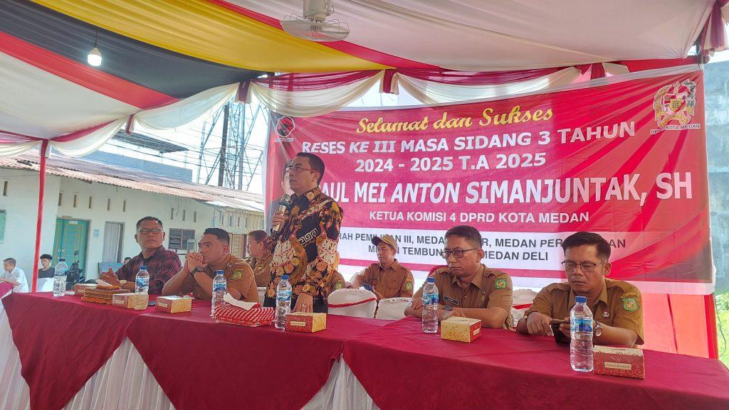 Acara Reses III masa persidangan III Tahun Sidang 2024-2025 sesi I di Jl Tempuling Gg Dahlia, Kelurahan Sidorejo Hilir, Kecamatan Medan Tembung, Senin (28/7/2025) pagi. Tampak disambut antusias oleh warga Tempuling, secara bergantian masyarakat menyampaikan aspirasi dan keluhan yang mereka alami selama ini.