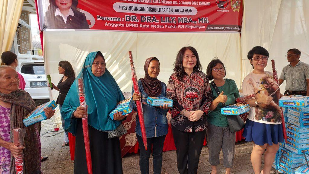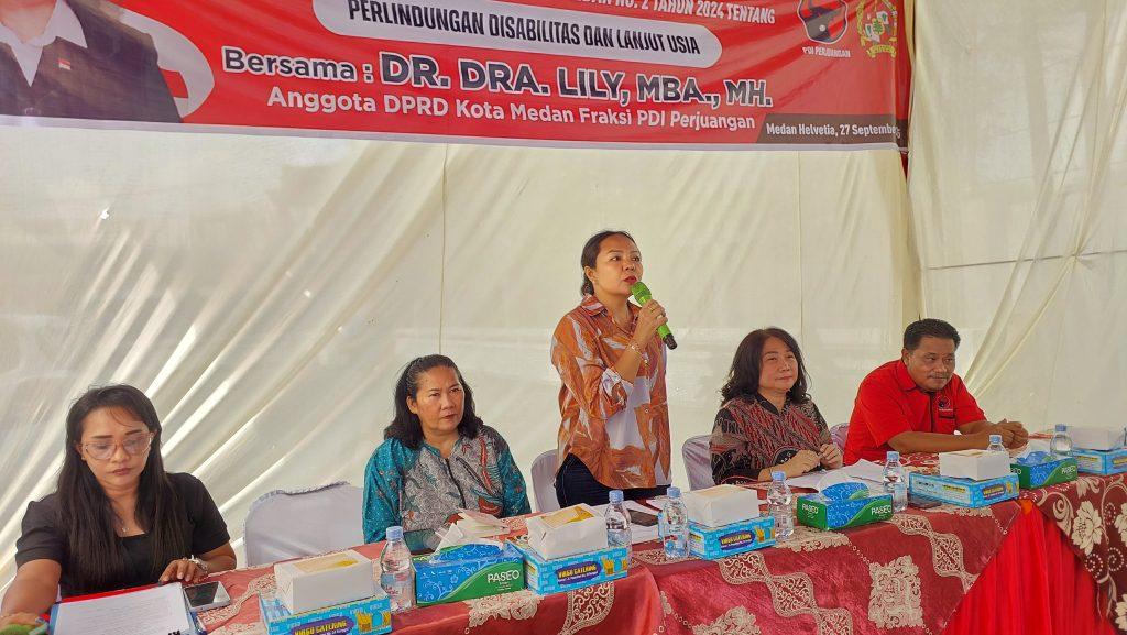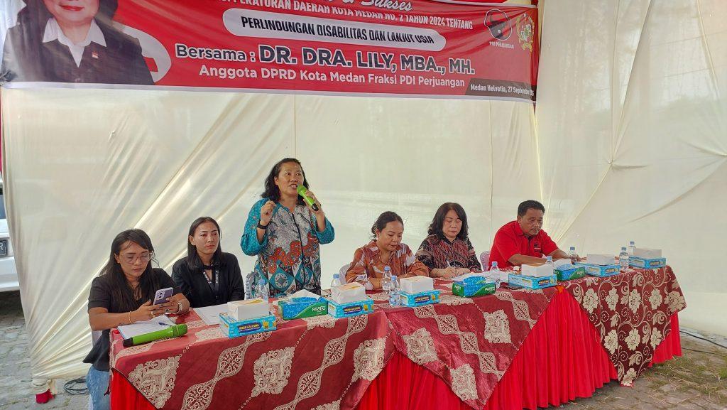 Hal itu disampaikan disampaikan anggota DPRD Medan DR Dra Lily MBA MH (PDI Perjuangan) dihadapan ratusan warga saat menggelar sosialisasi Perda (Sosper) ke IX Tahun 2025 produk hukum Pemko Medan Perda No 2 Tahun 2024 tentang Perlindungan Penyandang Disabilitas dan Lanjut Usia di Jalan Pantai Timur, Kelurahan Cintai Damai, Kecamatan Medan Helvetia, Sabtu (27/9/2025).