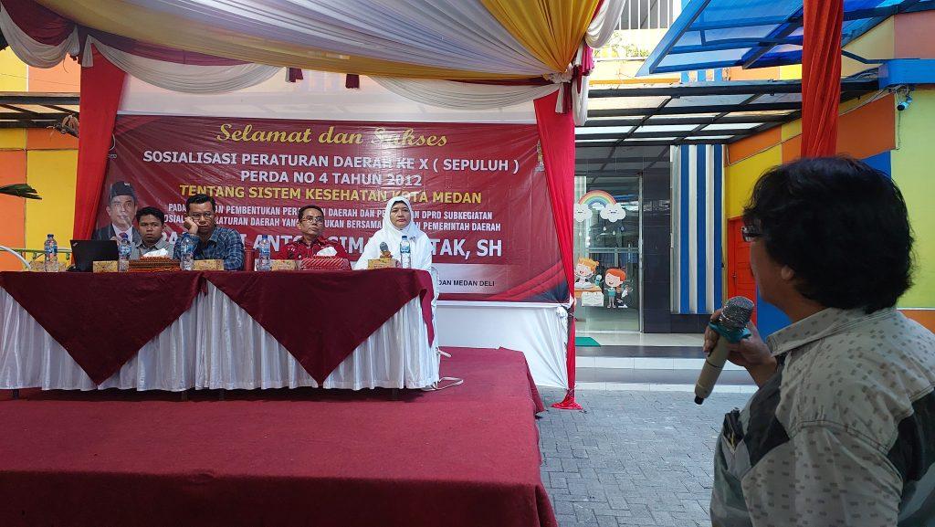 saat Paul Mei Anton Simanjuntak melaksanakan sosialisasi Perda (Sosper) ke X Tahun 2025 produk hukum Pemko Medan Perda No 4 Tahun 2012 tentang Sistem Kesehatan Kota Medan di Jl Bambu II, Kelurahan Durian, Kecamatan Medan Timur, Sabtu (11/10/2025).