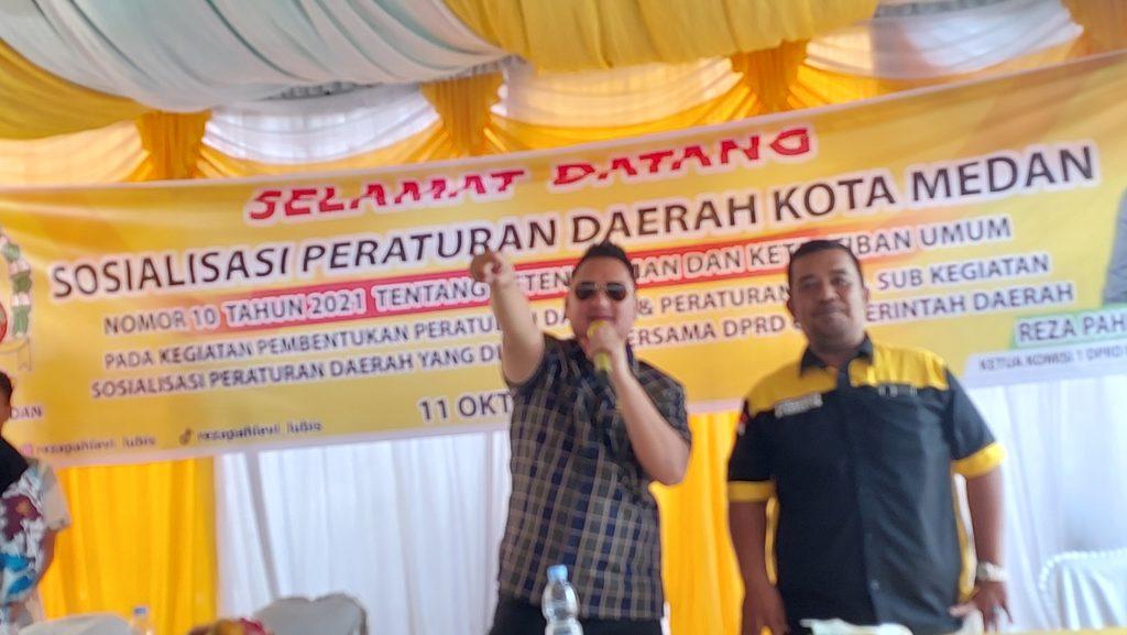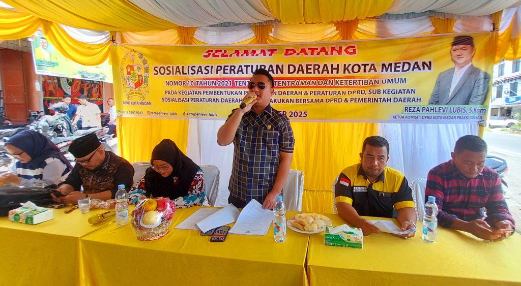 Ajakan itu disampaikan Reza Pahlevi Lubis S Kom ketika melakukan Sosialisasi Perda (Sosper) ke X Tahun 2025 produk hukum Pemko Medan Perda No 10 Tahun 2021 tentang ketentraman dan ketertiban umum di Jl Kapten Sumarsono, lingkungan IX, Kelurahan Helvetia Timur, Kecamatan Medan Helvetia, Sabtu (11/10/2025) pagi.