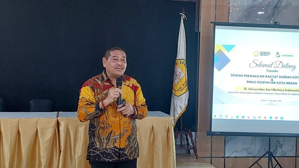 PosRoha.com | Medan, Guna menghadirkan Perda yang memenuhi kualifikasi sebagai Perda yang bagus, berkualitas serta efektif dan berkelanjutan. Panitia Khusus (Pansus) Rancangan Peraturan Daerah (Ranperda) tentang Kawasan Tanpa Rokok (KTR) DPRD Medan kunjungi Kampus Universitas Sari Mutiara (USM) Indonesia di Kecamatan Medan Helvetia, Selasa (14/10/2025).