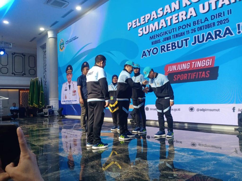 PosRoha.com | Medan, Sebanyak 112 atlet yang mengikuti Pekan Olahraga Nasional PON Cabor beladiri tersebut dilepas keberangkatannya oleh Gubernur Sumatera Utara diwakili Sekdaprovsu Togar Simangunsong di aula Raja Inal Siregar kantor Gubsu siang tadi ( 7/10/2025).