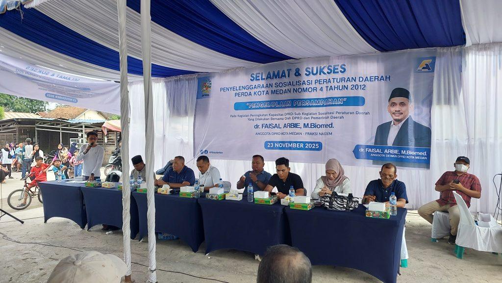 Hal itu disampaikan dr Faisal Arbie Biomed diacara Sosper ke XI Tahun 2025 produk hukum Pemko Medan Perda No 7 Tahun 2024 tentang Perubahan atas Perda No 6 Tahun 2015 tentang pengelolaan Persampahan di Jl Platina II, Kelurahan Titi Papan, Kecamatan Medan Deli, Minggu (23/11/2025).