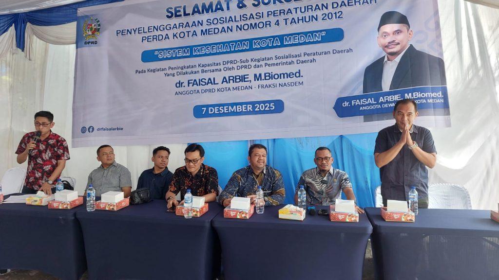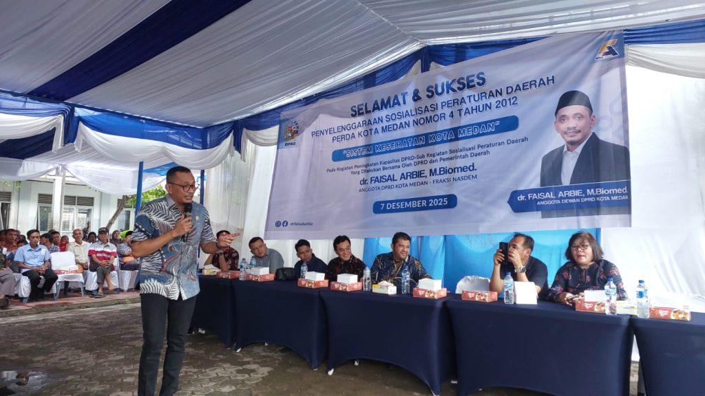 Penegasan itu disampaikan dr Faisal Arbie M Biomed ketika melaksanakan Sosper ke XII Tahun 2025 produk hukum Pemko Medan Perda No 4 Tahun 2012 tentang Sistem Kesehatan Kota Medan di Jl