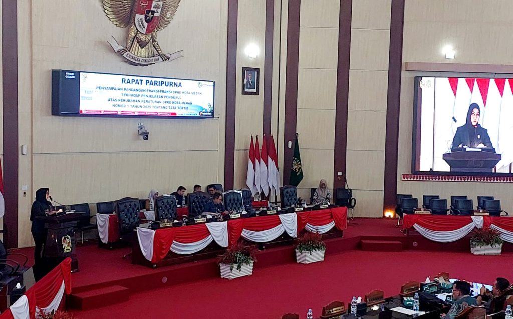 Pandangan ini disampaikan sekretaris Fraksi Lailatul Badri dalam rapat paripurna internal pandangan Fraksi Fraksi DPRD Kota Medan terhadap penjelasan pengusul atas perubahan Perda Kota Medan No 1 Tahun 2025 tentang Tata Tertib (Tertib) di ruang paripurna gedung DPRD Medan, Selasa (23/12/2025).