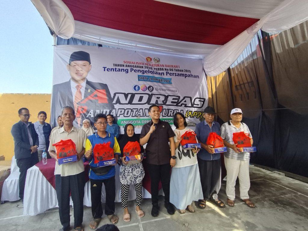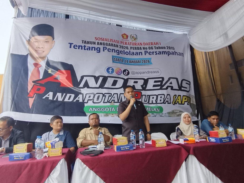 Hal itu disampaikan Andreas P Purba saat mengelar pelaksanaan Sosper ke I Tahun 2026 produk hukum Pemko Medan Perda No 7 Tahun 2024 tentang Perubahan atas Perda No 6 Tahun 2015 tentang pengelolaan Persampahan di Jl Lingkungan 18, Kelurahan Tajung Mulia Hilir, Kecamatan Medan Deli, Sabtu (24/1/2026).