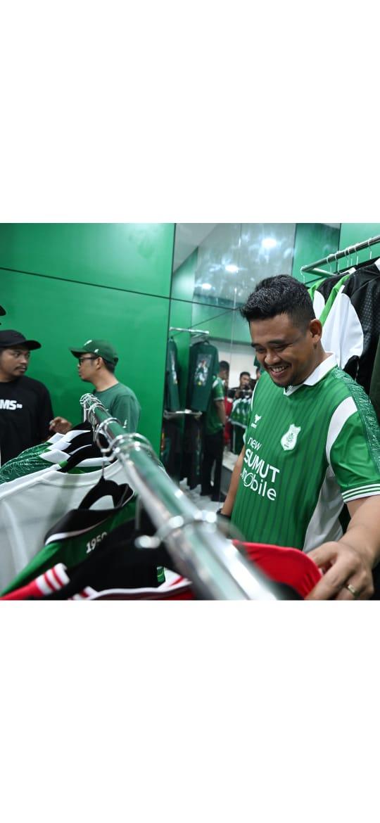 PosRoha.com | Medan, Gubernur Sumatera Utara (Gubsu) Muhammad Bobby Afif Nasution mengajak masyarakat penggemar PSMS Medan untuk membeli Jersey resmi PSMS di toko official PSMS Medan. Ajakan itu disampaikan Bobby Nasution usai meninjau toko official merchandise PSMS Medan di Jalan Jenderal Ahmad Yani, Medan, Jumat (9/1/2025).
