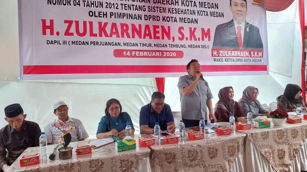 PosRoha.com | Medan, Wakil Ketua DPRD Medan H Zulkarnaen SKM mengaku terus memperjuangkan upaya peningkatan pelayanan kesehatan bagi masyarakat Kota Medan. Saat ini DPRD Medan sedang menggodok perubahan Perda No 4 Tahun 2012 tentang Sistem Kesehatan yang tujuannya ke depan masyarakat tidak boleh dipersulit lagi mendapat kesehatan gratis.