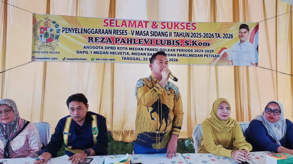 Ajakan dan penuh harapan itu dicetuskan Reza Pahlevi Lubis S Kom saat menggelar Reses V masa persidangan II Tahun Sidang 2025-2026 TA 2026 sesi ke II di Jl Kapten Sumarsono, Lingkungan IX, Kelurahan Helvetia Timur, Kecamatan Medan Helvetia, Minggu (22/2/2026) sore.