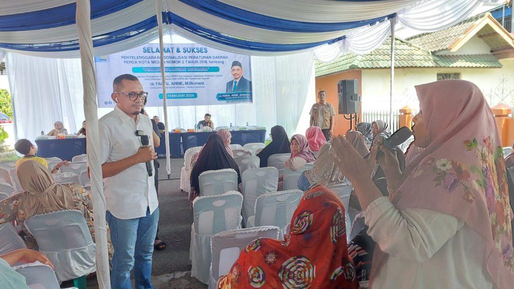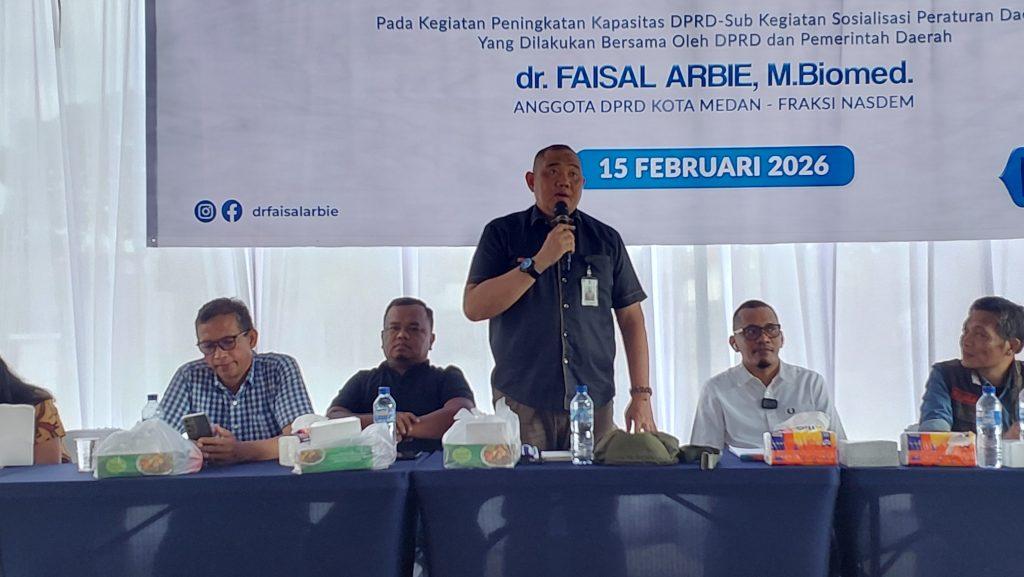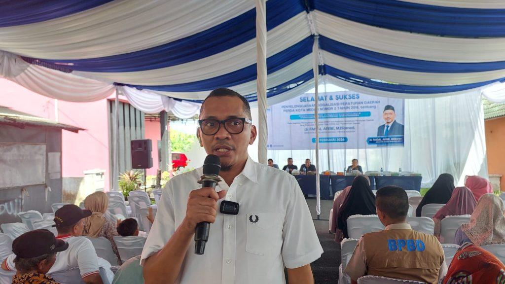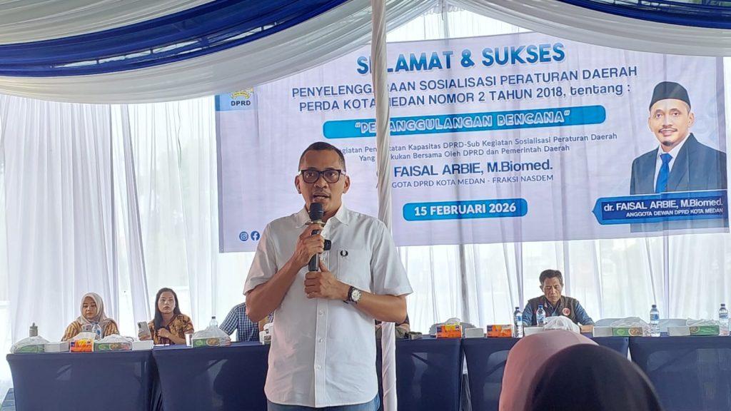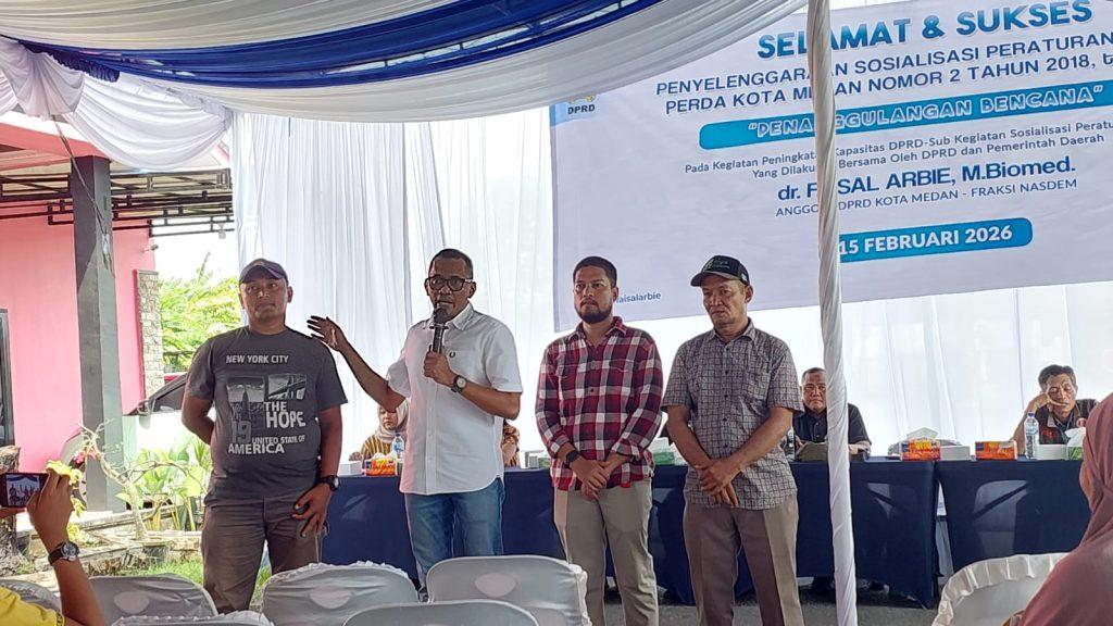Hal itu dikatakan dr Faisal Arbie B.Biomed saat menggelar Sosper ke II Tahun 2026 produk hukum Pemko Medan Perda Nomor 2 tahun 2018 tentang Penanggulang Bencana yang dilaksanakan di Jalan Platina Komplek Bank, Kelurahan Titi Papan, Kecamatan Medan Deli, Minggu (15/2/2026)