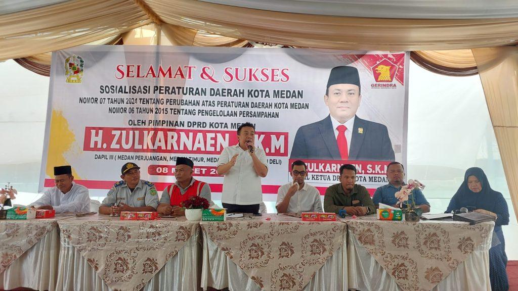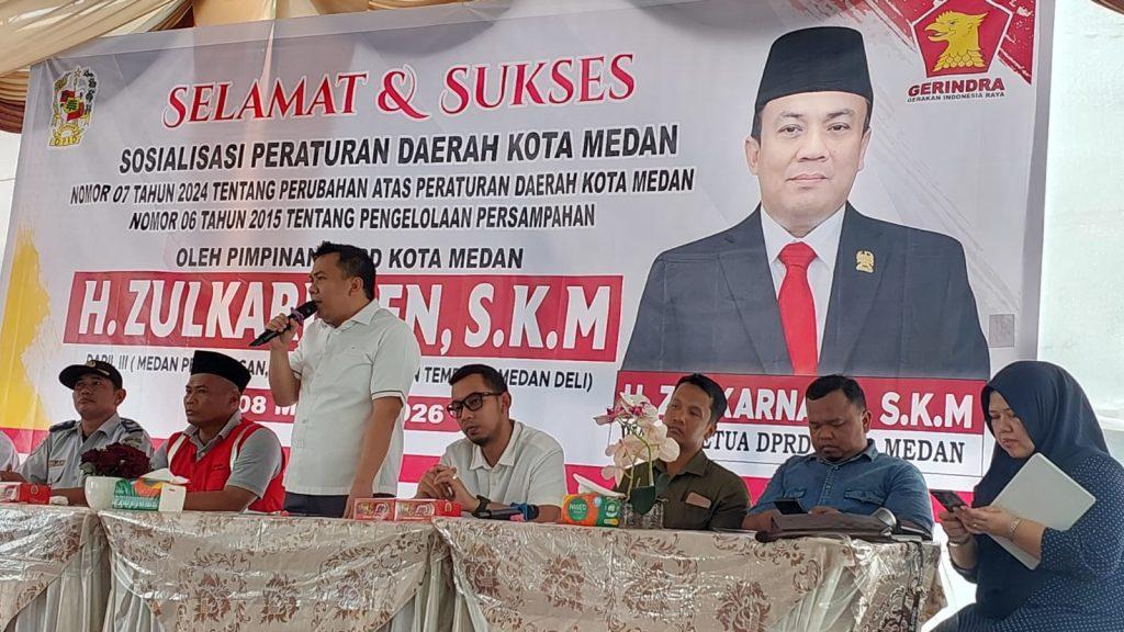 Hal itu disampaikan H Zulkarnaen SKM saat pelaksanaan Sosper ke III Tahun 2026 produk hukum Pemko Medan Perda No 7 Tahun 2024 tentang Perubahan atas Perda No 6 Tahun 2015 tentang pengelolaan Persampahan di Jl Platina V Gg Kenanga, Kelurahan Titi Papan, Kecamatan Medan Deli, Minggu (8/3/2026) siang.