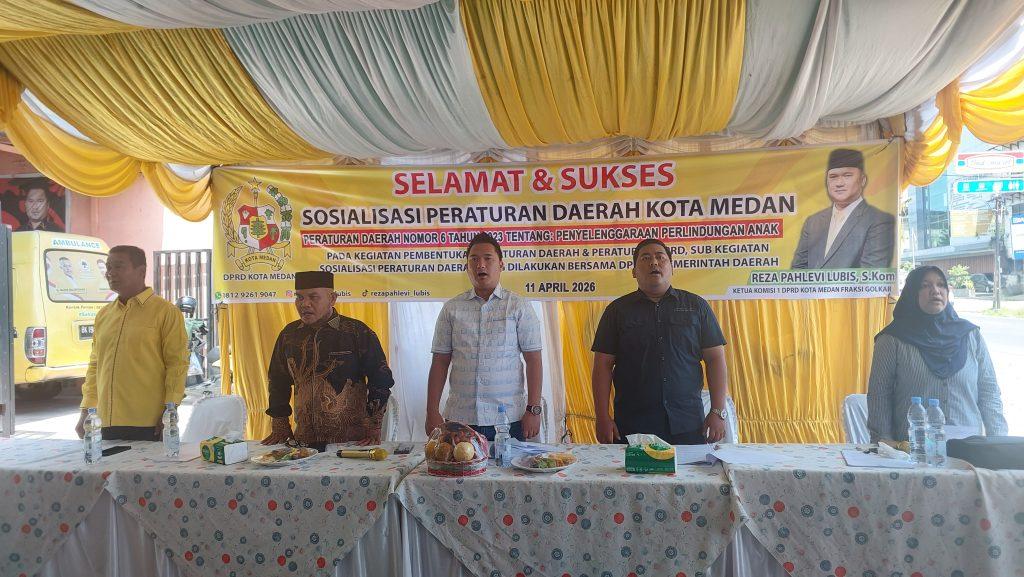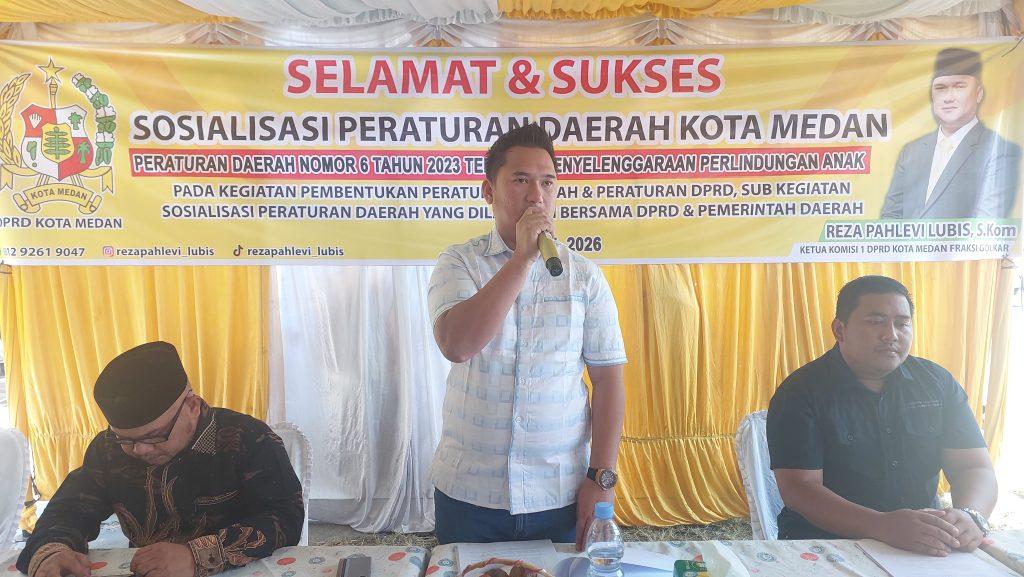 Hal itu disampaikan Ketua Komisi I DPRD Medan Reza Pahlevi Lubis S Kom saat menggelar sosialisasi Perda (Sosper) ke IV Tahun 2026 produk hukum Pemko Medan Perda No 6 Tahun 2023 tentang Penyelenggaraan Perlindungan Anak pada sesi I di Jl Kapten Sumarsono, Lingkungan IX, Kelurahan Helvetia Timur, Kecamatan Medan Helvetia, Sabtu (11/4/2026).