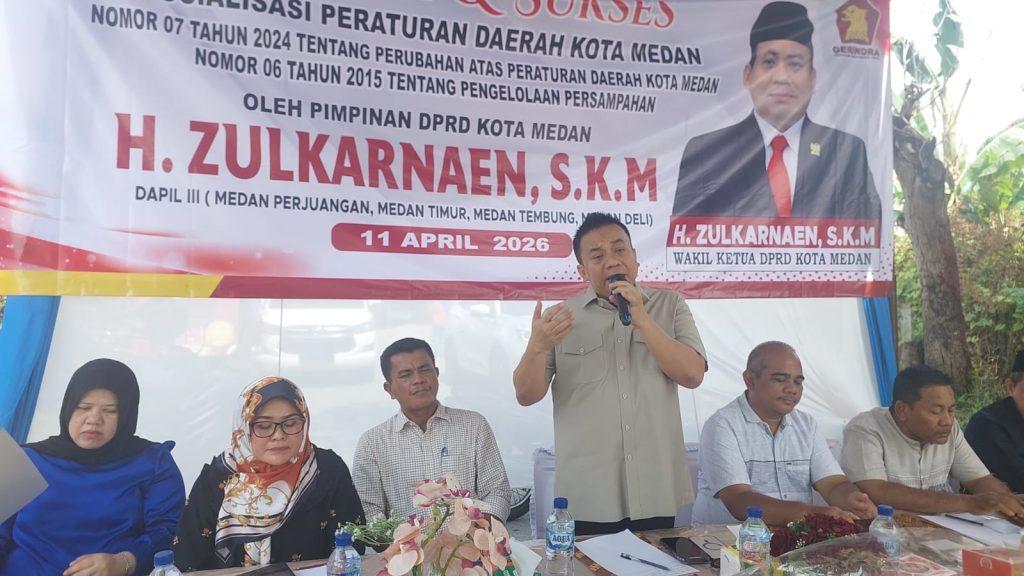 Hal itu disampaikan H Zulkarnaen SKM saat pelaksanaan Sosper ke IV Tahun 2026 produk hukum Pemko Medan Perda No 7 Tahun 2024 tentang Perubahan atas Perda No 6 Tahun 2015 tentang pengelolaan Persampahan sesi ke II di Jl Bandar Baru Sp Jl Pancurbatu, Kelurahan Sidodadi, Kecamatan Medan Timur, Sabtu (11/4/2026) siang.