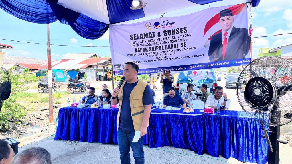 Ajakan itu disampaikan Saipul Bahri SE saat pelaksanaan Sosialisasi Perda (Sosper) ke IV Tahun 2026 produk hukum Pemko Medan Perda No 3 Tahun 2021 tentang Penyelenggaraan Administrasi Kependudukan di Jl Kakap Lingkungan VII Kelurahan Belawan Bahagia, Kecamatan Medan Belawan, Minggu (12/4/2026).