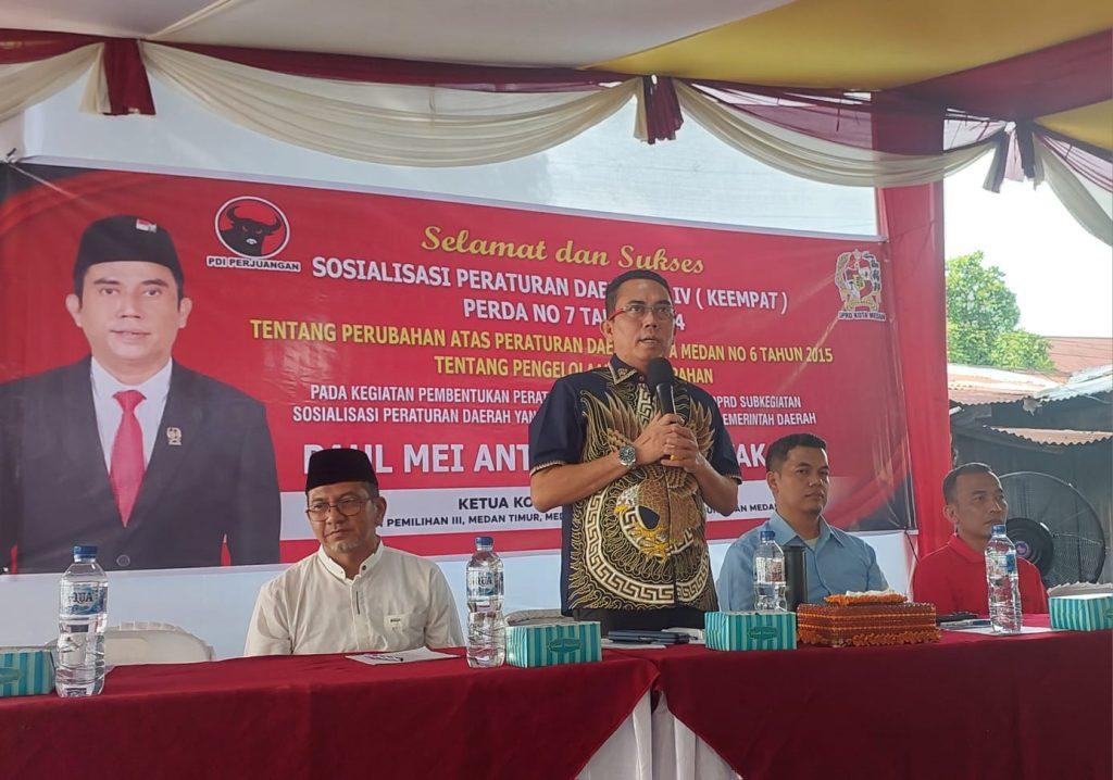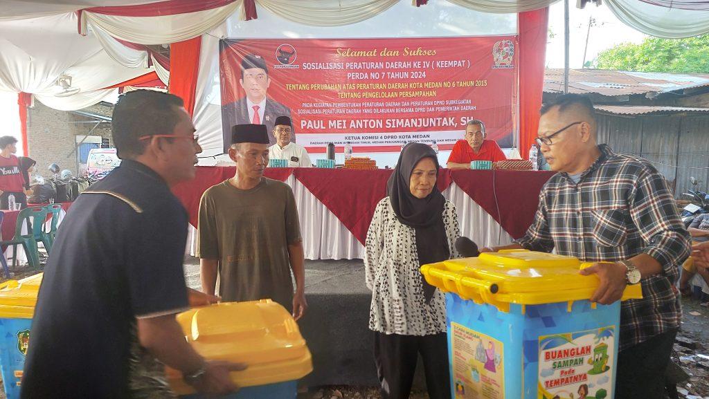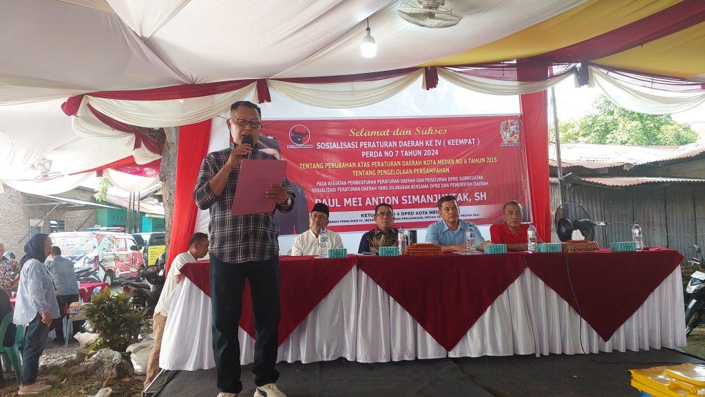PosRoha.com | Medan, Ketua Komisi IV DPRD Medan Paul Mei Anton Simanjuntak SH gelar Sosialisasi Perda (Sosper) tentang pengelolan persampahan. Dalam sosialisasi itu, Paul Simanjuntak mengeduksi masyarakat soal Perda dan pentingnya menjaga kebersihan lingkungan agar terbebas dari sampah.